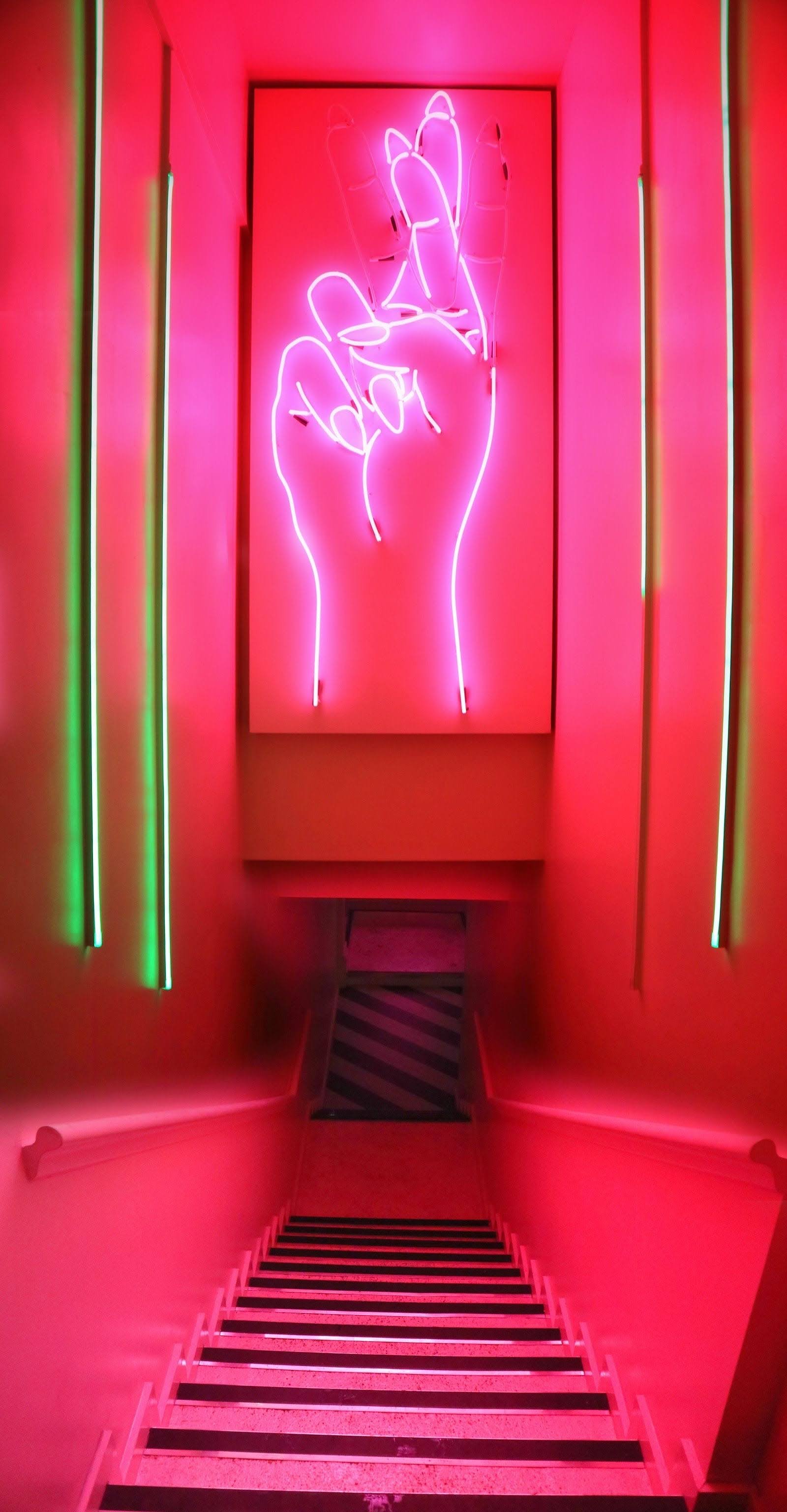 The Background of this print is a combination of the room from the other print and this image of a club entrance. The club image cuts through the image of the bedroom